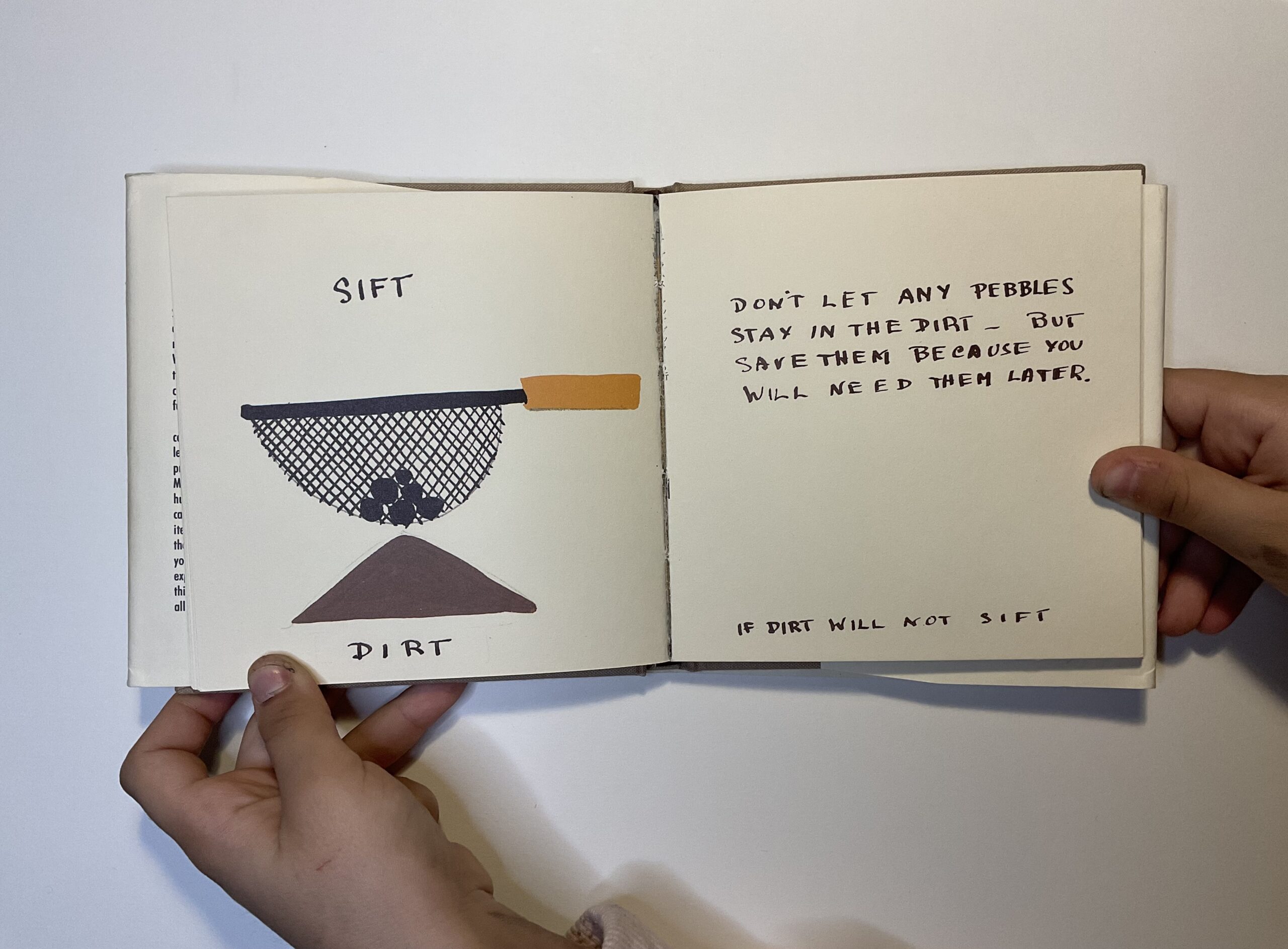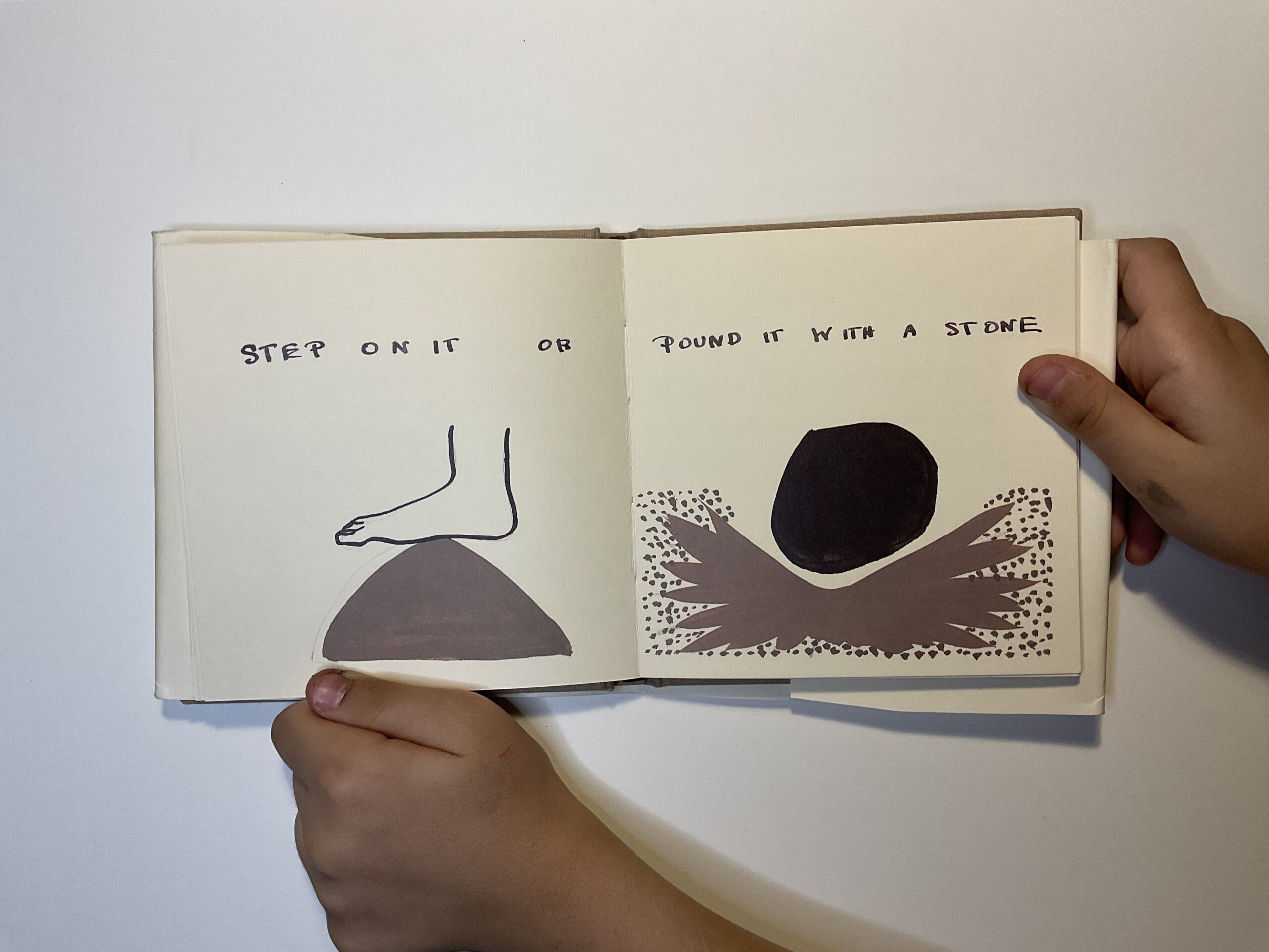 Αυτό το εικονοβιβλίο που κλείνει το μάτι στα βιβλία συνταγών αλλά και στην σοβαροφάνεια των artist books, θα αποτελούσε την προσωπική μου «Βίβλο» παραλίας, αν το είχα στα χέρια μου στην παιδική μου ηλικία, καθώς οι λασποσυνταγές και τα φαγητά από βότσαλα ήταν από τις πιο συχνές μου ασχολίες. Το ότι η ιδέα του Mud Book ανήκει στον John Cage, φανερώνει μια προφανή υπέρβαση — κι επιβεβαιώνει και τις δικές μου διαθέσεις απέναντι στα βιβλία που θεωρώ «σημαντικά». Εκείνα, δηλαδή, των οποίων η σημαντικότητα βρίσκεται ακριβώς στην ασημαντότητα των θεμάτων τους. Το παιχνίδι, το υπαινικτικό χιούμορ, το αναπάντεχο, η έκπληξη — όλα αυτά δημιουργούν τη γέφυρα ανάμεσα στην παιδική ηλικία και στον κόσμο των ενηλίκων.