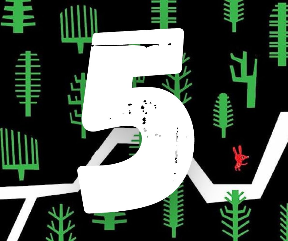 “5” θα πει τα πέντε πιο αγαπημένα βιβλία ενός εικονογράφου. Κάθε μήνα ένας Έλληνας ή μία Ελληνίδα δημιουργός επιλέγει και παρουσιάζει πέντε εικονογραφημένα βιβλία – ελληνικά ή ξένα, καινούρια ή παλιότερα, για παιδιά ή ενήλικες. Μέσα από αυτές τις επιλογές και τα μικρά κείμενα που συνοδεύουν τα βιβλία – ένα είδος λεζάντας – παίρνουμε μια μικρή γεύση από τις αναγνωστικές προτιμήσεις των καλλιτεχνών, τα βιβλία των οποίων έχουμε στα σπίτια μας και ξεφυλλίζουμε σχεδόν καθημερινά. Μια ιδέα ίσως από τις επιρροές τους, τους καλλιτέχνες που θαυμάζουν, τα έργα που αγαπούν να έχουν στη βιβλιοθήκη τους. Παράλληλα, μέσα από τις επιλογές αυτές γνωρίζουμε βιβλία και δημιουργούς που ίσως να μην ξέραμε ως τώρα. Ένα ταχύρυθμο μάθημα εικαστικών, μια εισαγωγή στον υπέροχο κόσμο της εικονογράφησης, που μόνο οι ίδιοι οι εικονογράφοι μπορούν να κάνουν.