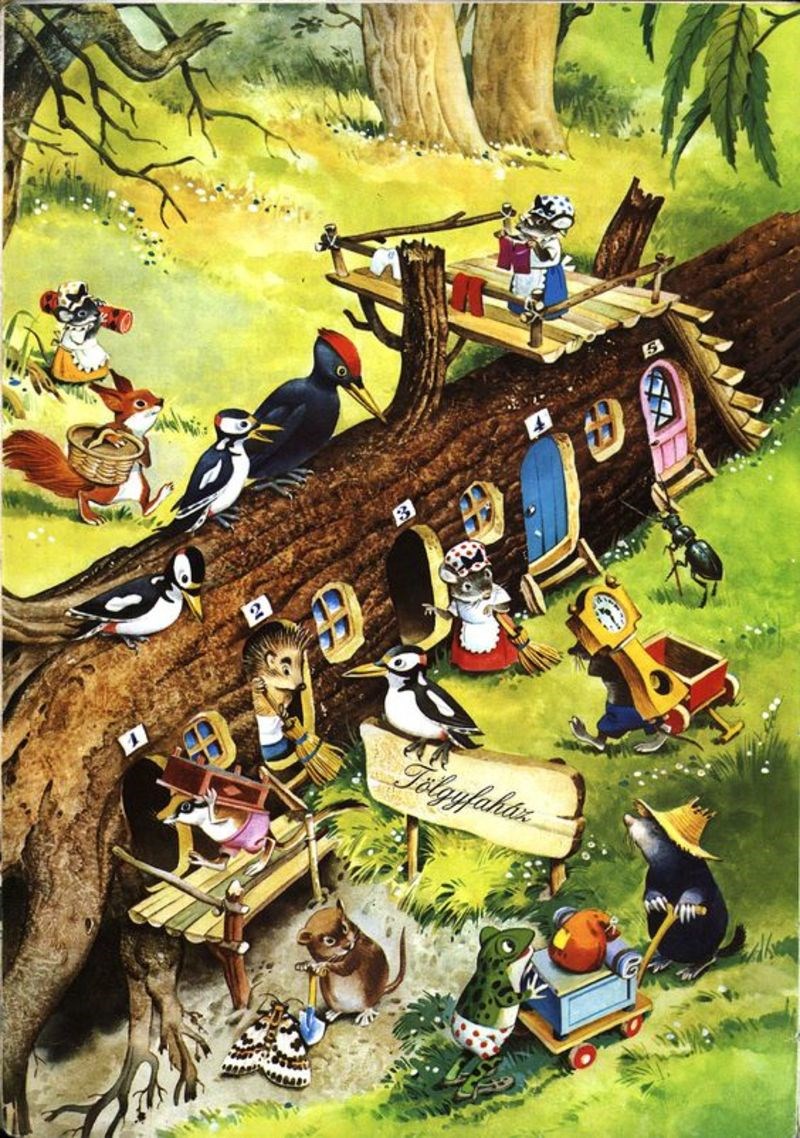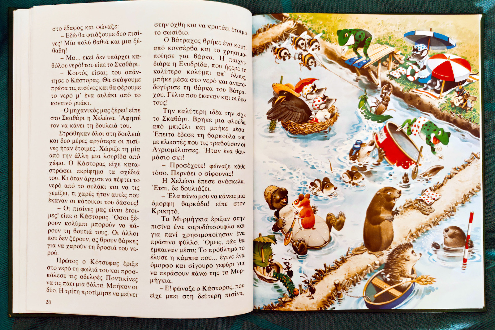 Πολύ πριν η Αλεπού με καλέσει να διαλέξω για το “5” τα αγαπημένα μου εικονογραφημένα βιβλία, ήξερα ότι αν με καλέσει, η πρώτη μου επιλογή θα είναι όπως και δήποτε ο Μαγικός Κόσμος του Δάσους, του Tony Wolf (κατά κόσμον, Αntonio Lupatelli). O Wolf μας λέει ιστορίες για ζωάκια και νάνους στο δάσος που βασικά απλώς κάνουν τη φάση τους, φτιάχνουν μαρμελάδες, ασανσέρ, πολυκατοικίες και κρουαζιερόπλοια, όλα αυτά από τα διάφορα που βρίσκουν στο μέρος που ζουν. Η εικονογράφηση είναι πλούσια και γεμάτη λεπτομέρειες, γεμίζει το μάτι σου βρε παιδί μου, και δημιουργεί έναν πλήρη κόσμο με φοβερή εφευρετικότητα (ως παιδί μου άρεσε πάρα πολύ να βλέπω τους μηχανισμούς που κατασκευάζουν οι χαρακτήρες για να ποτίζουν ή να ανεβοκατεβαίνουν ή ό,τι άλλο). Ταυτόχρονα, στο τέλος κάθε βιβλίου ο κόσμος του Wolf κάνει ένα μαγικό ΤΣΑΚ! και επεκτείνεται, για να συμπεριλάβει γίγαντες, νεράιδες, ξωτικά, και εσχάτως και δράκους (!!!) και να φέρει την εφευρετικότητα της καθημερινής ζωής των πλασμάτων του ακόμα πιο μακριά.
