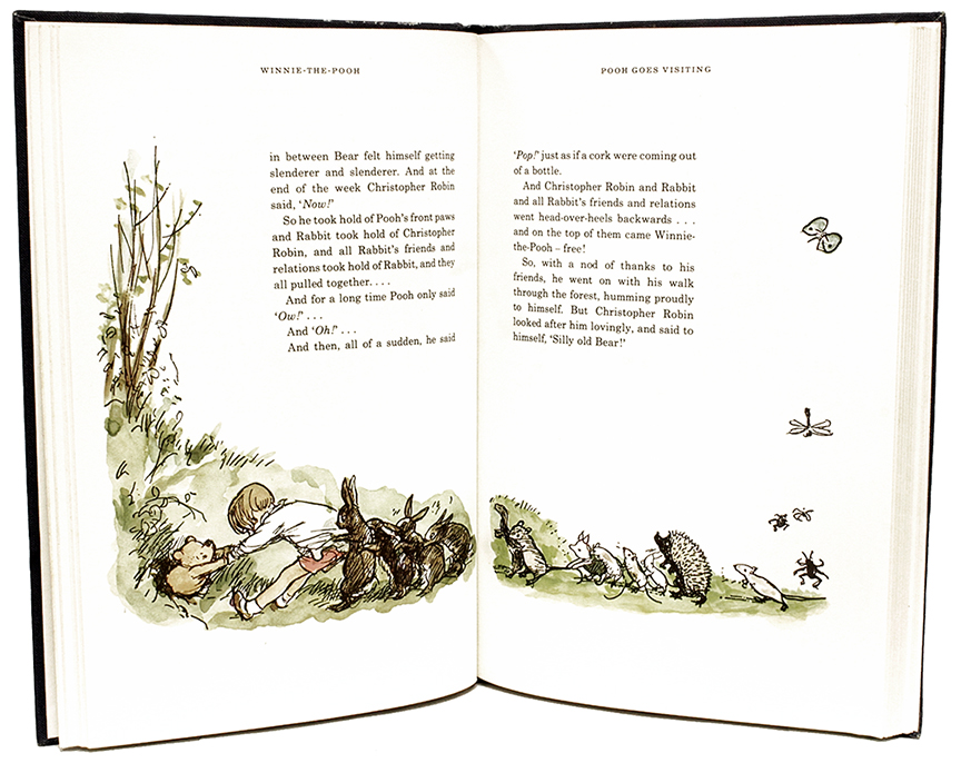 Winnie-The-Pooh, A. A. Milne, εικονογράφηση E. H. Shepard, Methuen Children’s Books, London, 1974. O Γουίνι το Αρκουδάκι, είναι ίσως ο πιο αγαπημένος μου χαρακτήρας στον κόσμο των παιδικών παραμυθιών, όπως τον γνώρισα μέσα από τις αυθεντικές εκδόσεις του 1926, ’27, ’28 και ’74. Η κλασική και πνευματώδης γραφή του Α. Α. Milne περιγράφει, μέσα από τις καθημερινές ιστορίες του Γουίνι και των φίλων του, τη φύση των σχέσεων, τις υπαρξιακές ανησυχίες και τους φιλοσοφικούς στοχασμούς με τον πιο ανάλαφρο, υπαινικτικό και ουσιαστικό τρόπο. Η αξεπέραστη εικονογράφηση του E. H. Shepard δίνει ζωή και αυθεντικότητα σε κάθε χαρακτήρα, με μια αφοπλιστικά ανέκφραστη εκφραστικότητα που ξεχειλίζει συναίσθημα. Μια σύνθεση εικόνας και κειμένου που ζεσταίνει διαχρονικά την καρδιά και πλουτίζει τον νου.