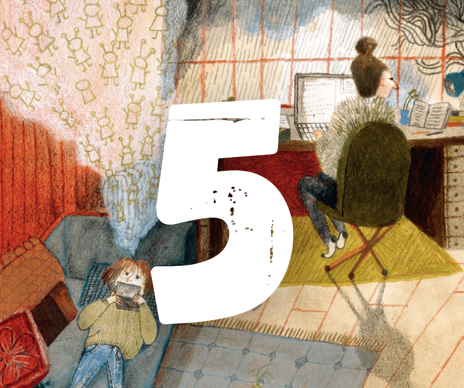 “5” θα πει τα πέντε πιο αγαπημένα βιβλία ενός εικονογράφου. Κάθε μήνα ένας Έλληνας ή μία Ελληνίδα δημιουργός επιλέγει και παρουσιάζει πέντε εικονογραφημένα βιβλία – ελληνικά ή ξένα, καινούρια ή παλιότερα, για παιδιά ή ενήλικες. Μέσα από αυτές τις επιλογές και τα μικρά κείμενα που συνοδεύουν τα βιβλία – ένα είδος λεζάντας – παίρνουμε μια μικρή γεύση από τις αναγνωστικές προτιμήσεις των καλλιτεχνών, τα βιβλία των οποίων έχουμε στα σπίτια μας και ξεφυλλίζουμε σχεδόν καθημερινά με ή χωρίς τα παιδιά μας. Μας δίνουν με αυτόν τον τρόπο μια ιδέα από τις επιρροές τους, τους καλλιτέχνες που θαυμάζουν και τα έργα που αγαπούν να έχουν στη βιβλιοθήκη τους. Παράλληλα, μέσα από τις επιλογές αυτές γνωρίζουμε βιβλία και δημιουργούς που ίσως να μην είχαμε συναντήσει ως τώρα. Ένα ταχύρυθμο μάθημα εικαστικών, μια εισαγωγή στον υπέροχο κόσμο της εικονογράφησης, που μόνο οι ίδιοι οι εικονογράφοι μπορούν να προσφέρουν.