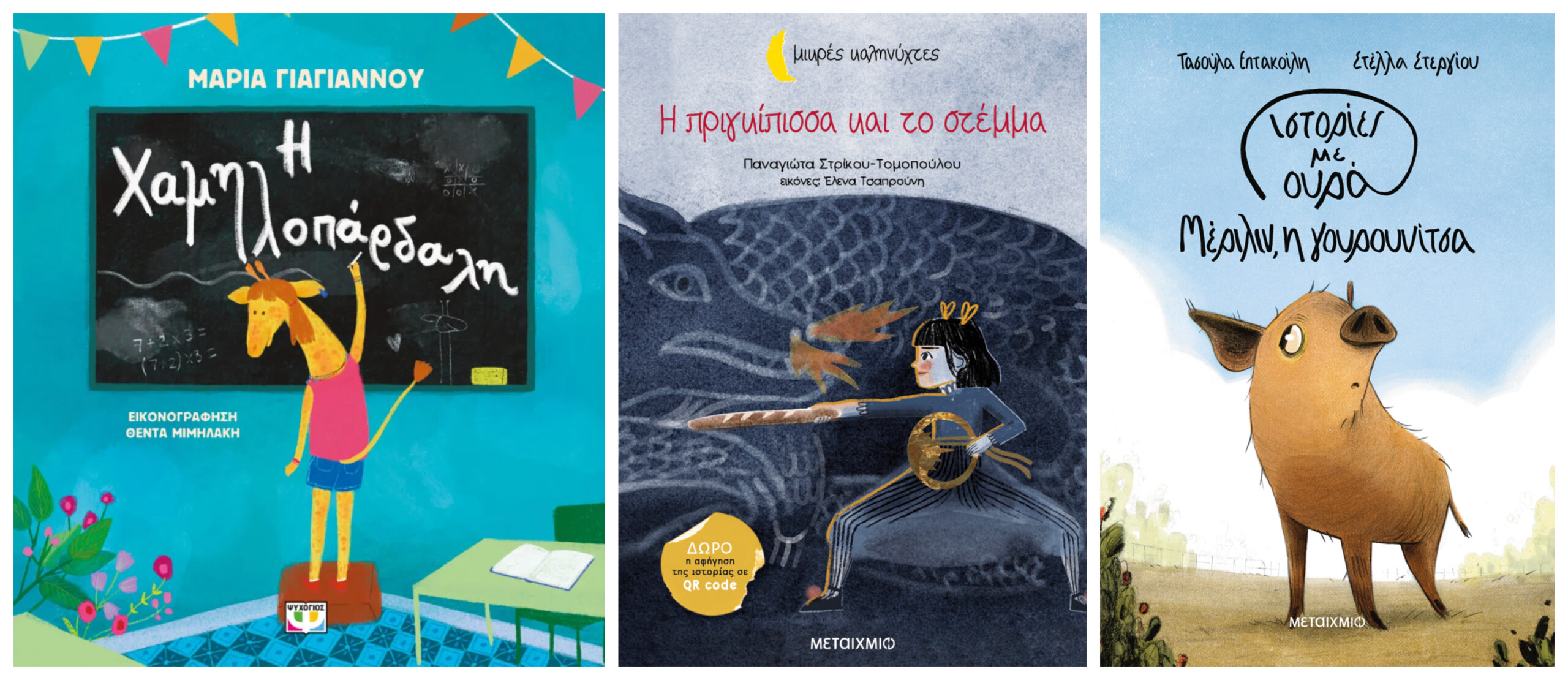 Απλωμένα στο τραπέζι μπροστά μου βρίσκονται τρία βιβλία που απευθύνονται σε παιδιά ηλικίας από 4 έως 8 ετών. Πρόκειται για τρία βιβλία διαφορετικού θέματος το καθένα, αλλά που και τα τρία τα κλείνω με την ίδια ακριβώς αίσθηση.