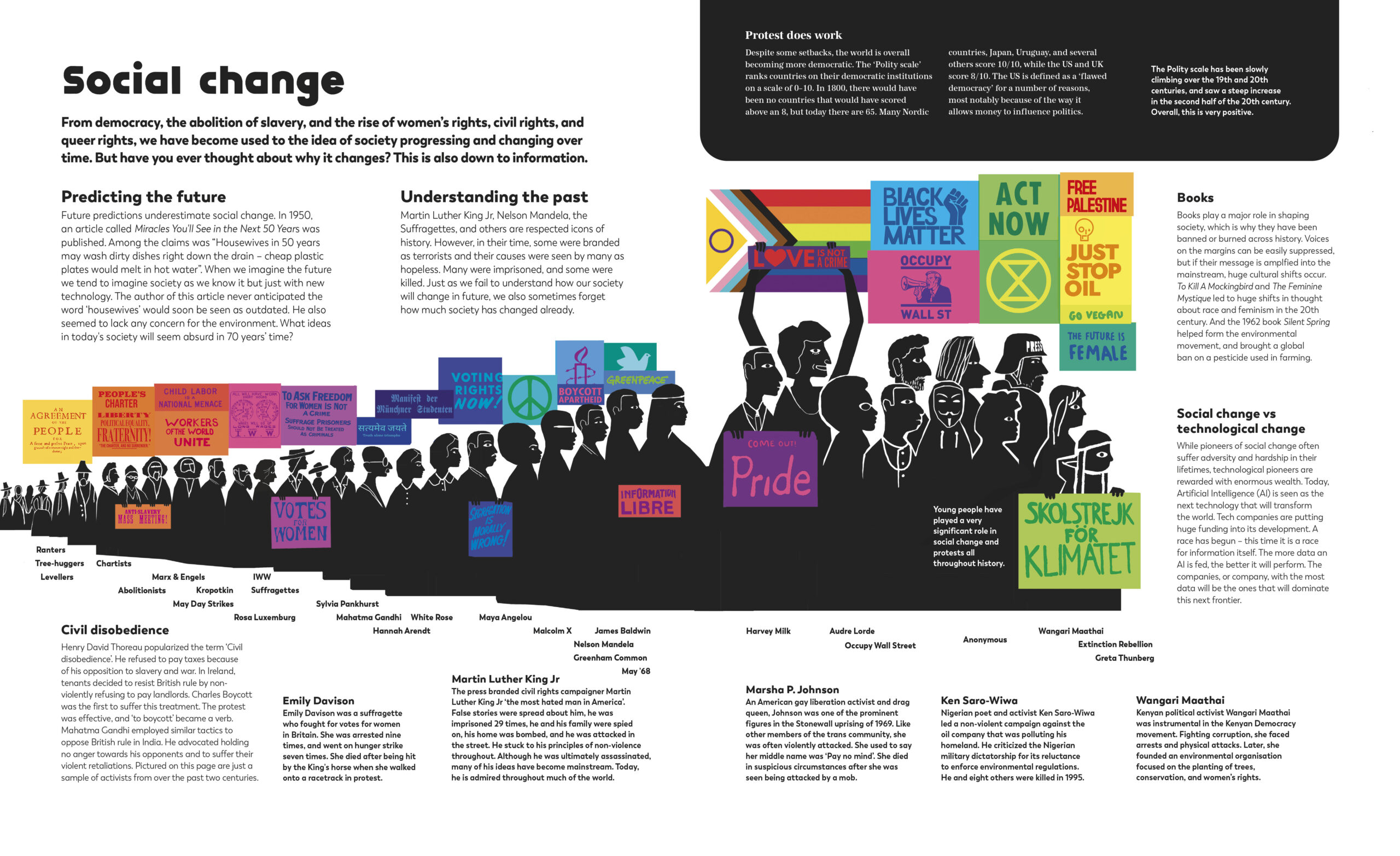 Τα παιδιά καλούνται να πλοηγηθούν σε ένα περιβάλλον πληροφορίας που συχνά τα κατακλύζει, χωρίς να έχουν πλήρη επίγνωση του πλαισίου. Νομίζω ότι αυτή η οπτική (σ.σ. που παρουσιάζεται στο βιβλίο) θα ωφελούσε και τους ενήλικες, οι οποίοι και αυτοί αντιμετωπίζουν το ίδιο θέμα. Όλοι μιλάμε για “δεξιά” και “αριστερά”, αλλά πώς προέκυψε αυτή η παράξενη ιδέα να χωρίζεται η σκέψη σε δύο στρατόπεδα; Υποψιάζομαι ότι πολλοί ενήλικες δεν θα μπορούσαν να απαντήσουν σε αυτή την ερώτηση. Πότε ξεκίνησαν τα Μέσα Μαζικής Ενημέρωσης; Και γιατί; Και ποια επίδραση είχαν στην κοινωνία; Γιατί ήταν οι Ηνωμένες Πολιτείες η χώρα που άρχισε να προωθεί την ελευθερία του λόγου; Πότε ξεκίνησε η διαφήμιση να χρηματοδοτεί τα ΜΜΕ; Και ποια ήταν η συνέπεια αυτής της αλλαγής; Το να κατανοούμε από πού προέρχονται οι πληροφορίες και πώς έχουν διαμορφώσει την κοινωνία είναι πιο σημαντικό από ποτέ. Όλοι μας πρέπει να πάρουμε τις αποστάσεις μας, να κάνουμε ένα βήμα πίσω και να εξετάσουμε το πλαίσιο όσων διαβάζουμε, βλέπουμε ή ακούμε στα ΜΜΕ.