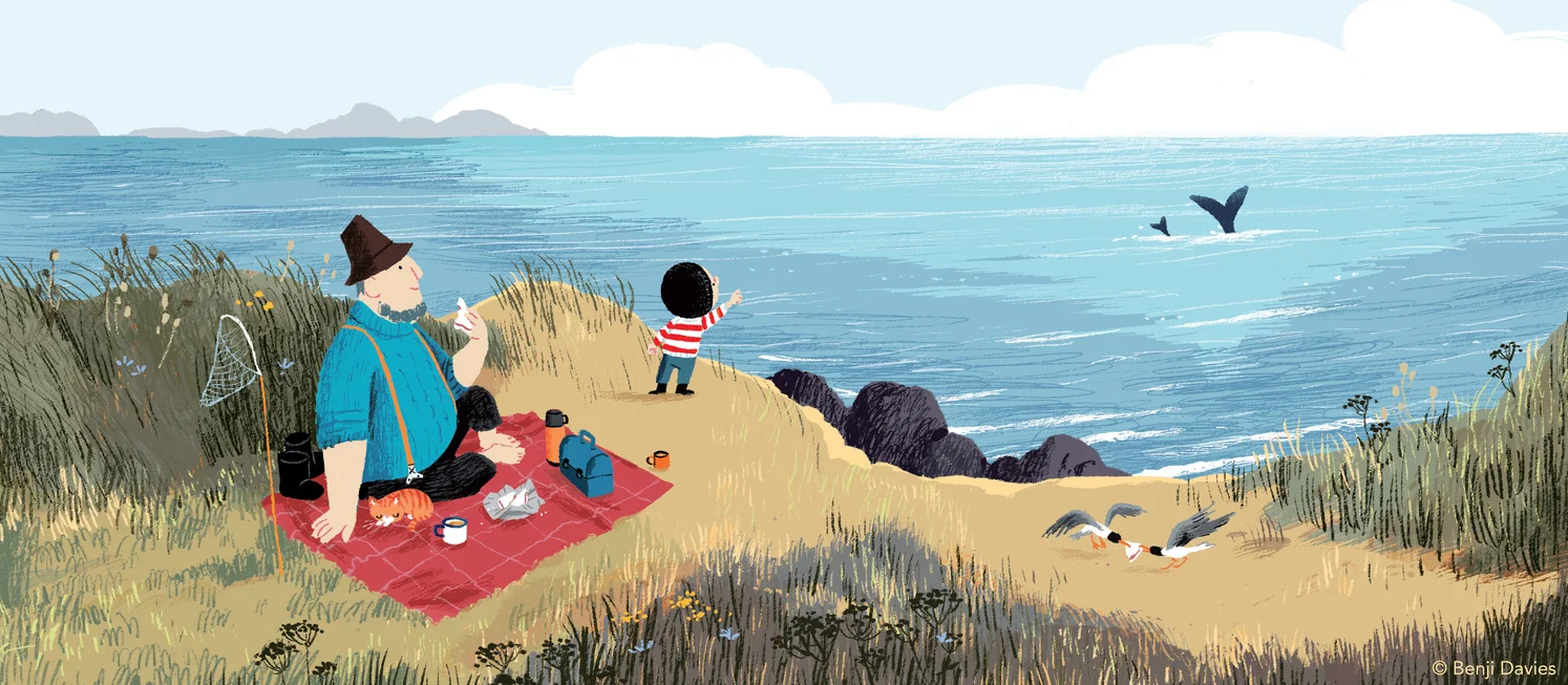 Στο βιβλίο Ο Νόι και η φάλαινα (Benji Davies, μτφρ. Αντώνης Παπαθεοδούλου, εκδ. Ίκαρος), η τέχνη της αποσιώπησης είναι πολύ αναπτυγμένη. Φαινομενικά έχουμε μια ήσυχη ιστορία, την αδιατάρακτη ηρεμία της οποίας σπάει ένα αναπάντεχο συμβάν. Μια καταιγίδα ξεβράζει στην ακτή ένα μικρό φαλαινάκι. Και το βρίσκει ο ήρωάς μας καθώς παίζει στην άμμο. Το ερώτημα που δημιουργείται από εκεί και πέρα είναι τι θα κάνει με το εύρημά του. Ο Νόι αποφασίζει να περιθάλψει το μικρό κήτος στο σπίτι του χωρίς την άδεια του πατέρα του και να το κρατήσει εκεί. Ωστόσο ο πατέρας του, που λείπει όλη μέρα στη δουλειά και επιστρέφει το βράδυ, γρήγορα ανακαλύπτει το φαλαινάκι και ζητάει από τον Νόι να το επιστρέψουν εκεί όπου ανήκει, στη θάλασσα. Ο Νόι με βαριά καρδιά συμφωνεί με τον πατέρα του, αλλά στο τέλος καταλαβαίνει ότι έπραξε το σωστό.