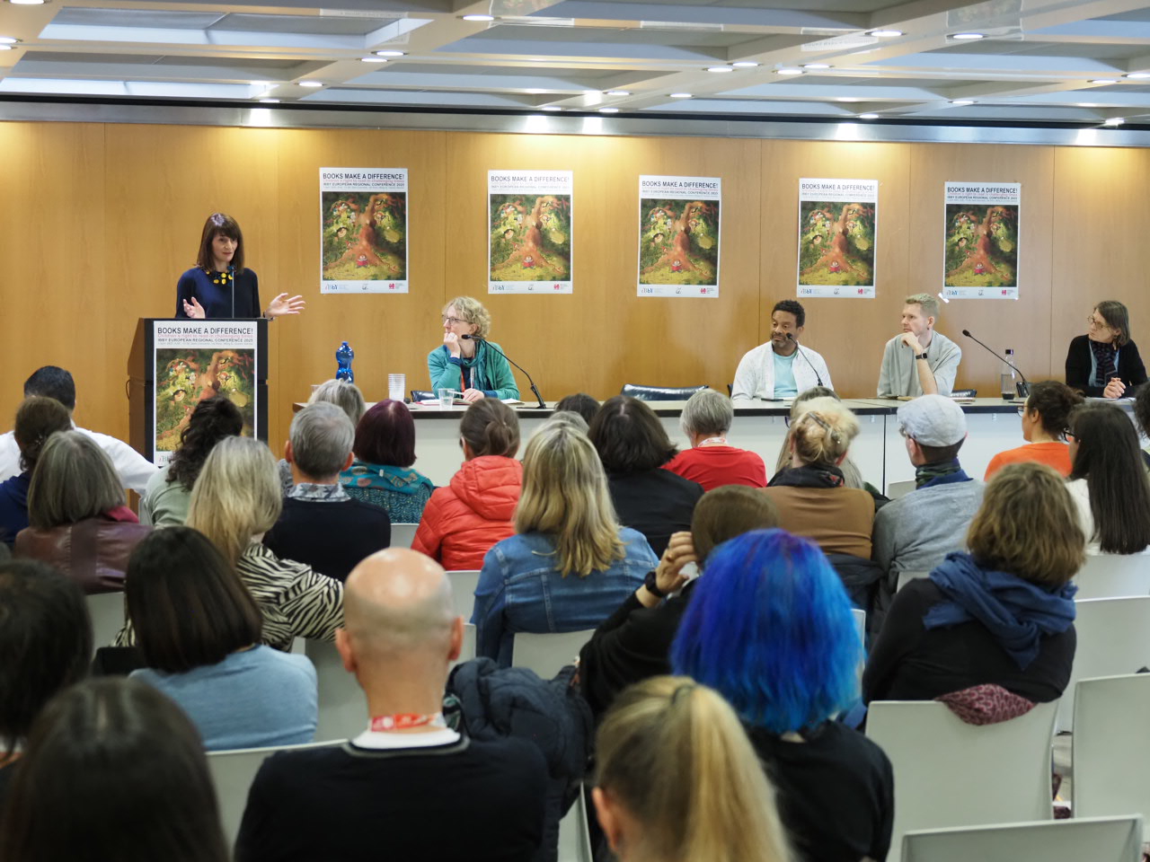 Συζητήθηκαν οι περιορισμοί που αντιμετωπίζουν οι εκδότες, οι δημιουργοί, οι φορείς προώθησης της ανάγνωσης, οι ερευνητές και οι ακτιβιστές των ανθρωπίνων δικαιωμάτων. Η Nicky Parker και οι συνεργάτες της παρουσίασαν το ευρωπαϊκά χρηματοδοτούμενο έργο Seen and Heard, που εστιάζει στην ενίσχυση της φωνής των παιδιών και την έκφρασή τους σχετικά με τα δικαιώματά τους. Η παρουσίαση συνοδεύτηκε από ζωντανή εικονογράφηση του Chris Riddell από το Λονδίνο, που αποτύπωνε τις ιδέες της συζήτησης με εικόνες – λες και κρατούσε πρακτικά με εικόνες.