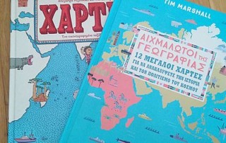 Δύο από τα πιο ενδιαφέροντα βιβλία γνώσεων για παιδιά που κυκλοφόρησαν μέσα στο 2020 και αφορούν τη γεωγραφία είναι το “Αιχμάλωτοι της γεωγραφίας – 12 μεγάλοι χάρτες για να ανακαλύψετε την ιστορία και τον πολιτισμό, την ιστορία και τον πολιτισμό του κόσμου” του Tim Marshall σε εικονογράφηση Grace Easton και Jessica Smith (μτφρ. Τατιάνα Γαλάτουλα, εκδ. Διόπτρα) και οι “Χάρτες” των Πολωνών Aleksandra Mizielińska & Daniel Mizieliński (μτφρ. Αναστασία Χατζηγιαννίδη, εκδ. Πατάκη).